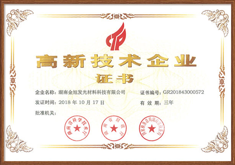 湖南金旭發光材料科技有限公司于 2016年成立,注冊資金1000萬元,是一家專業從事蓄能自發光反光材料的研發、生產與銷售的高新技術企業,于2018年獲得省工信廳認定的省級新材料企業。